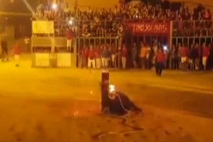Бык, которому подожгли рога, совершил самоубийство на глазах у толпы