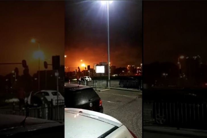 Сообщается, что всполохи пламени были хорошо заметны в разных частях города.