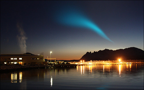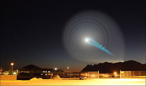 По данным Itromso, перед появлением странной спирали поступило сообщение о запуске в этом районе ракеты со стороны России