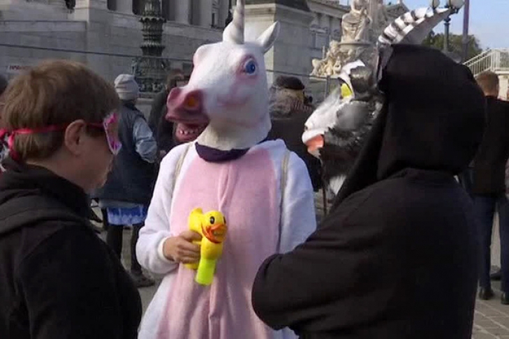 Участники протеста специально нарядились в карнавальные костюмы, чтобы подчеркнуть "всю абсурдность закона".
