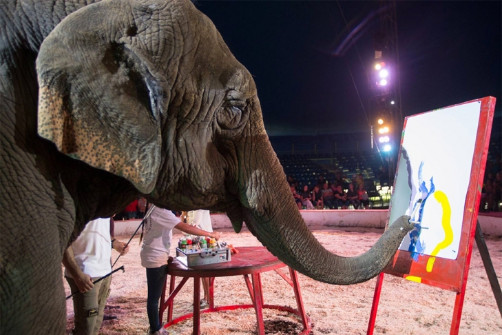 Венгерский передвижной цирк Флориана Рихтера продал картины, написанные слоном. Об этом сообщает агентство Reuters.