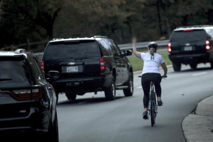 Показавшая неприличный жест Дональду Трампу велосипедистка осталась без работы. 50-летнюю Джули Бриксман уволили после того, как вслед проезжавшему кортежу главы Белого дома она показала средний палец.