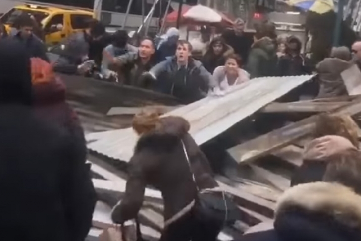 Строительные леса в центре Нью-Йорка рухнули на прохожих (видео)