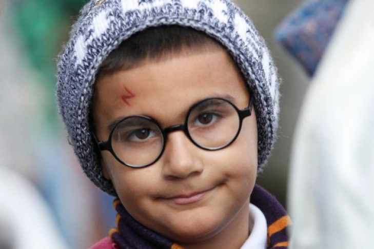 На улицу высыпали толпы детей и взрослых в характерных для Гарри Поттера круглых очках и шарфах, которые носили учащиеся волшебной академии Хогвартс.