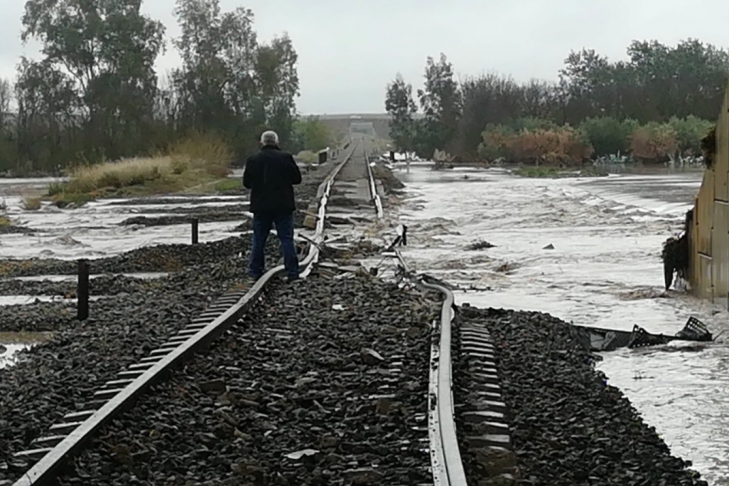 Поезд, в котором находилось 79 пассажиров, следовал по маршруту Малага - Севилья. Инцидент произошел около десяти утра, когда третий вагон сошел с рельсов из-за затопленного пути.