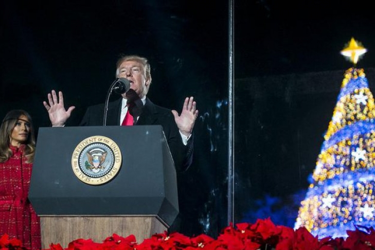 Президент США Дональд Трамп впервые в должности главы государства зажег огни на главной рождественской елке страны у Белого дома, сообщает телеканал Fox News.