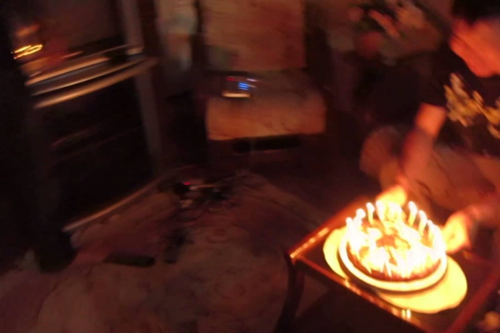 На записи видно, как подруга подносит юбилярше торт. В этот момент женщин обливают специальной синтетической праздничной пеной, которая тут же вспыхивает от свечей, стоящих на столике.