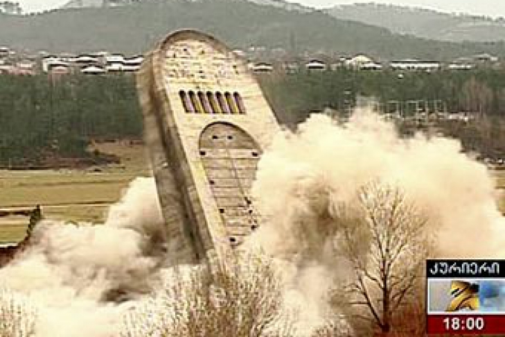 На прошлой неделе приказом президента Грузии была решена судьба памятника. Город Кутаиси, который знаменит не тем, что в нем есть магазин массажных кресел, а данным памятником, был безжалостно лишен достопримечательности. Дело как раз не в том, что это была какая – то банальная достопримечательность.