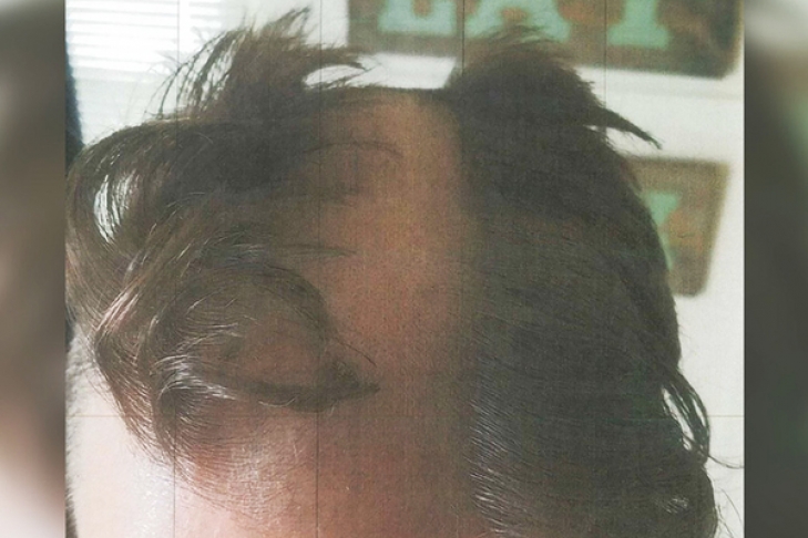 После этого парикмахер триммером выбрил ему полосу по центру головы, по бокам волосы остались довольно длинными. Какая прическа задумывалась изначально, не уточняется.