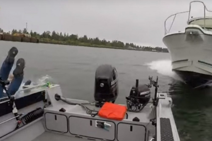 В американском штате Орегон катер, не заметив лодки с рыбаками, врезался в нее на огромной скорости. Видео произошедшего было опубликовано в YouTube.