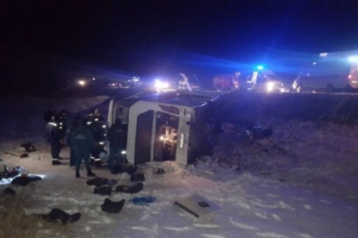 В России автобус слетел с дороги и перевернулся, есть жертвы (видео)