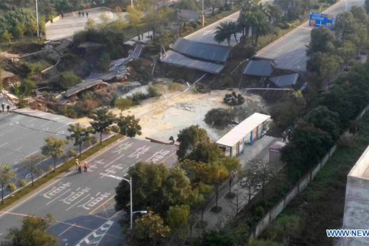 В Китае обрушился участок дороги, много погибших (видео)