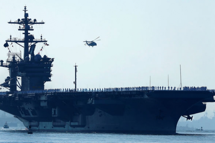 Эскадра боевых кораблей ВМС США, возглавляемая атомным авианосцем Carl Vinson вошла во вьетнамский порт Дананг с четырехдневным дружественным визитом, передает Time.