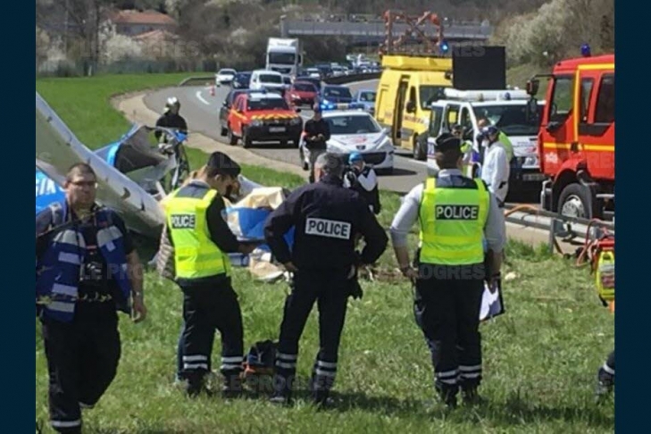 Прибывшие на место происшествия спасатели установили, что оба находившихся в самолете человека погибли. В настоящее время одна из двух полос движения по автостраде по направлению к городу Лиону закрыта.