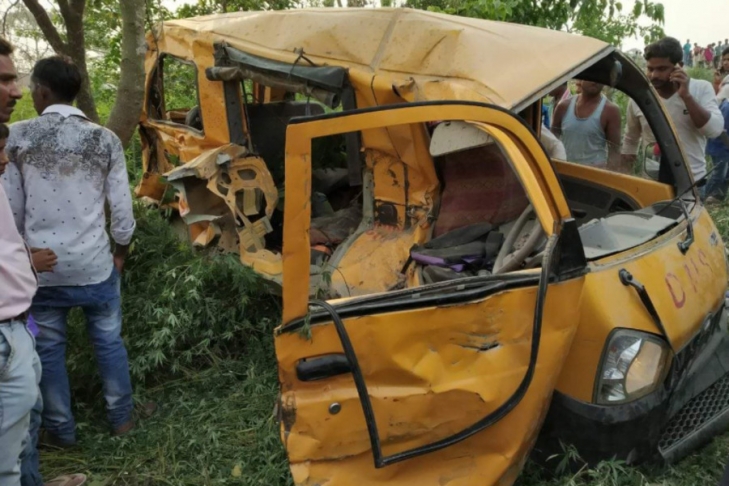 Трагедия случилась утром в четверг, 26 апреля, при столкновении школьного автобуса с поездом на железнодорожном переезде в Дудхи, неподалеку от города Кушинагар (штат Уттар-Прадеш).