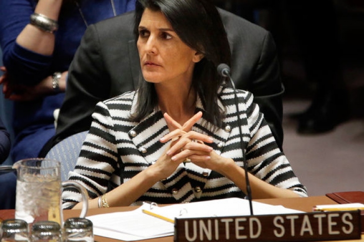 Постпред США при ООН Никки Хейли сказала, что американская сторона использует свое право постоянного члена СБ ООН и наложит вето на резолюцию, поскольку проект резолюции подрывает усилия по установлению мира в ближневосточном регионе, а его формулировки являются "морально обанкротившимся однобоким подходом".