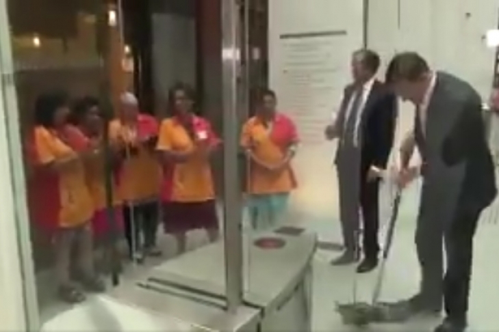 Уборщицы восхитились голландским премьером, убравшим следы пролитого кофе (видео)