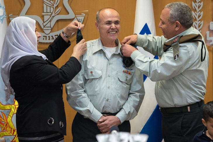 Камиль Абу-Рокун получает погоны генерал-майора. Слева — жена офицера, справа — глава Генштаба Гади Айзенкот