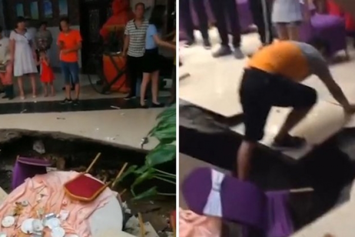 В Китае гости прямо на свадьбе провалились под землю. Видео происшествия опубликовало издание Beijing News.