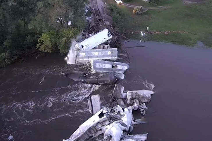 Поезд ехал из города Манкейто в Миннесоте в город Норт-Платт в Небраске. Отмечается, что в воде оказалось 20 вагонов. В результате инцидента никто не пострадал. Опасные вещества в воду не попали.