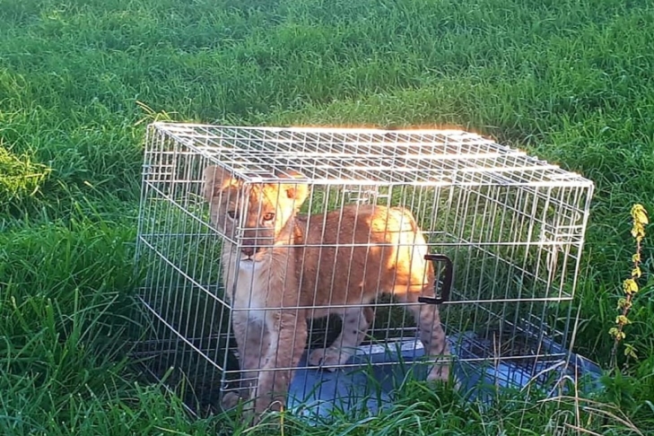 По сообщению, львенка в клетке обнаружил житель городка Тейховен (Нидерланды), вышедший на утреннюю пробежку