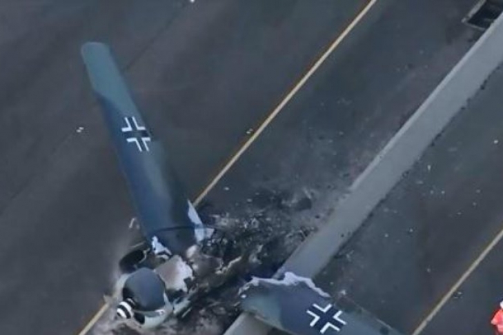 "Фашистский" самолет разбился на трассе в Калифорнии (видео)
