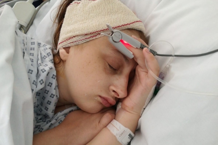 У девушки наблюдался первый тип синдрома Арнольда — Киари — самая легкая форма, при которой нервная система не повреждена. В июне ее прооперировали, чтобы снизить давление на головной мозг. Это не помогло, поэтому в сентябре потребовалась новая операция. Хирурги работали восемь часов и удалили часть черепа пациентки. Из-за начавшегося менингита ей пришлось провести в больнице больше месяца. Она выписалась лишь в конце октября.