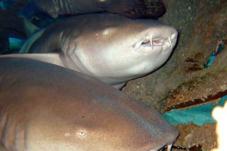 Американские туристы из штата Юта со своим восьмилетним сыном Эшером Джонсоном посетили бассейн с шестью усатыми акулами-няньками. Они считаются безопасными для людей поэтому вместе с рыбами плавали и дети.