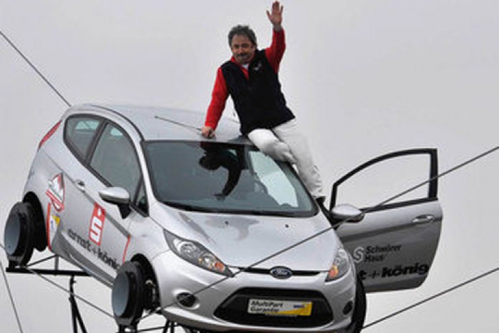 Немецкий трюкач и канатоходец Йоханн Трабер (Johann Traber) проехал на автомобиле Ford Fiesta 120 м. Мужчина проехал со скоростью 37,3 км/ч по двум тросам, натянутым между двумя мачтами на высоте 20 м над землей, сообщило издание Badische Zeitung.