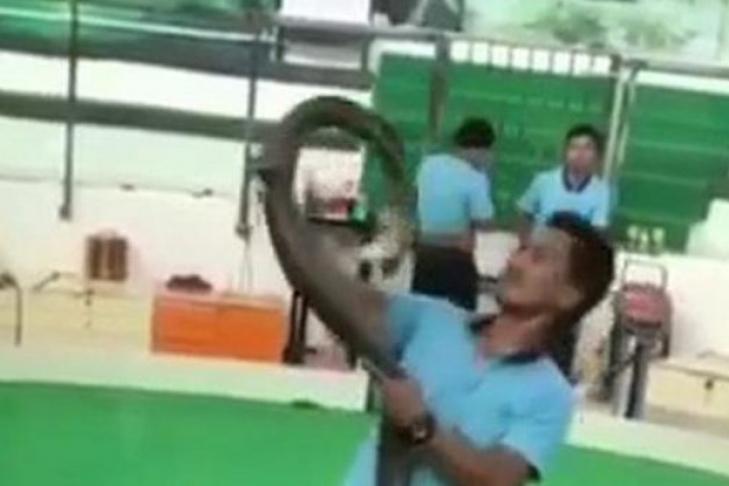 Кобра укусила дрессировщика на глазах у зрителей (видео)