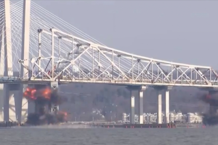 Отмечается, что первоначально предполагалось, что краны будут разбирать мост по частям, а остатки вывозить на барже, поскольку считалось, что взрыв нанесет урон атлантическому осетру и другим морским обитателям. Но, по словам инженеров, стальная конструкция моста оказалась нестабильной, и безопасность рабочих была под вопросом. В результате, пришли к выводу, что единственно возможный вариант – это взорвать мост.