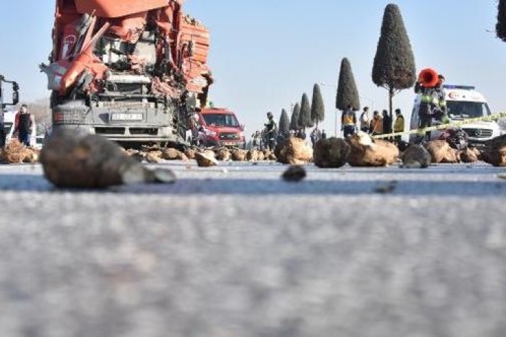 Авария произошла утром на дороге "Конья - Анкара" возле промышленной зоны. Среди автомобилей, которые попали в ДТП, есть грузовики.