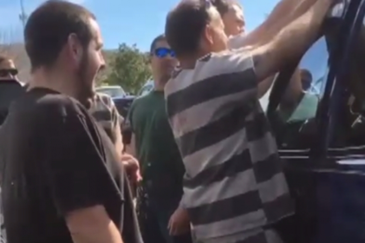 Отец девочки захлопнул дверь внедорожника, оставив ключи внутри, после чего машина автоматически заблокировалась. В момент, когда родитель решил разбить окно камнем, на него обратил внимание шериф, руководивший пятью осужденными на общественных работах.