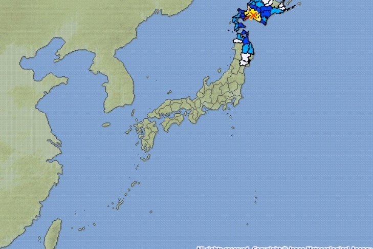 В восточном японском городе Ацума произошло землетрясение магнитудой 5,7.