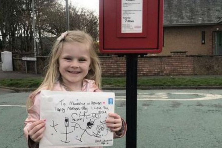 На День матери, праздновавшийся в Великобритании 31 марта, проживающая в городе Килманрок четырехлетняя девочка Элла Леннон послала по почте поздравительную открытку своей маме Дженнифер, которая умерла от рака мозга в декабре прошлого года, сообщают "Факты".