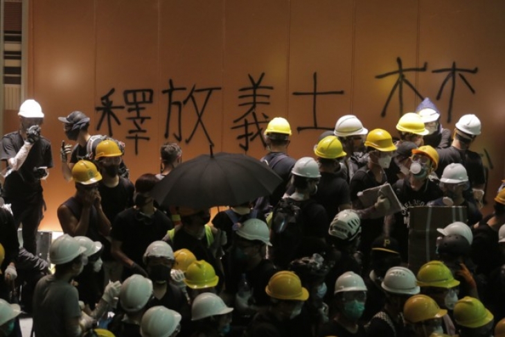 Десятки демонстрантов в масках, большинство из которых держали в руках импровизированные щиты, вошли в здание Законодательного совета поздно вечером в понедельник.