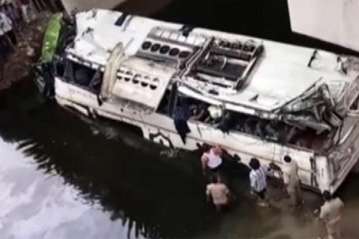 По данным издания, автобус с пассажирами направлялось из города Лакхнау в Дели. В какой-то момент водитель не справился с управлением, и транспортное средство упало в воду с высоты около 4,5 м.