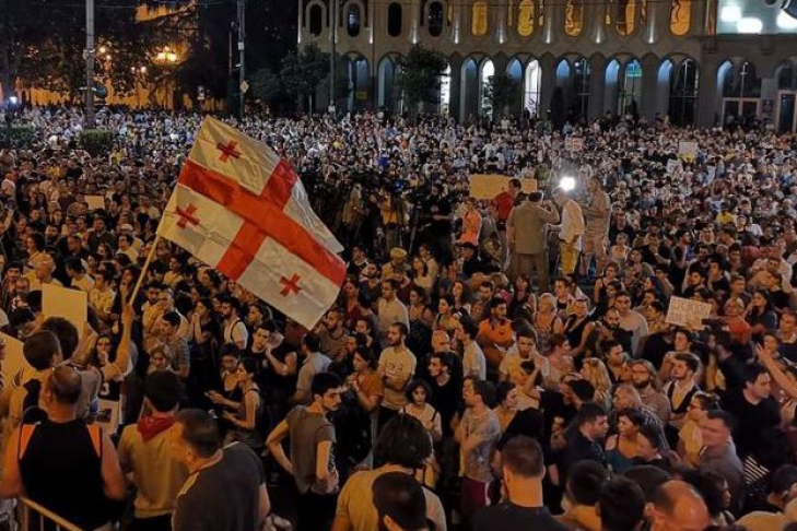 Вечером в понедельник, 8 июля, под зданием грузинского телеканала "Рустави-2" в Тбилиси возобновилась акция протеста в связи с нецензурной бранью телеведущего Георгия Габуния.