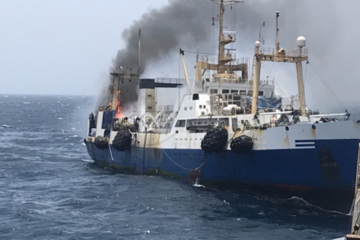 Подтверждена информация о гибели двух человек в связи с пожаром на борту украинского рыболовного судна "Иван Голубец", которое горело у берегов Мавритании 20-21 июля.