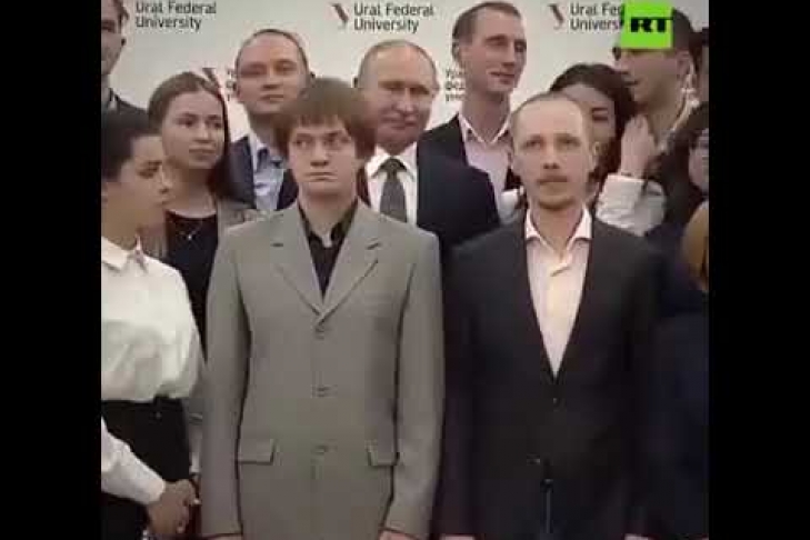 Президент России Владимир Путин попал в неловкую ситуацию во время визита в Уральский федеральный университет: на групповом фото его закрыл один из студентов.