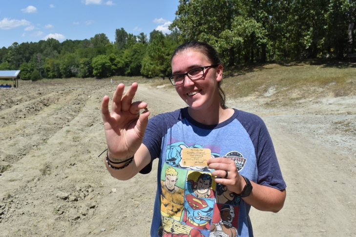 27-летняя Миранда Холлингсхед узнала о знаменитом парке в округе Пайк четыре года назад, а в пятницу, 16 августа, решила посетить его с семьей. Уроженка Техаса вспоминает, как сидела в тени и смотрела на YouTube обучающее видео по поиску драгоценностей. "Я отвлеклась на секунду на детей, потом опустила взгляд вниз и увидела его в куче с камнями", — рассказывает она.