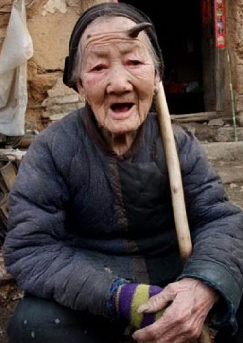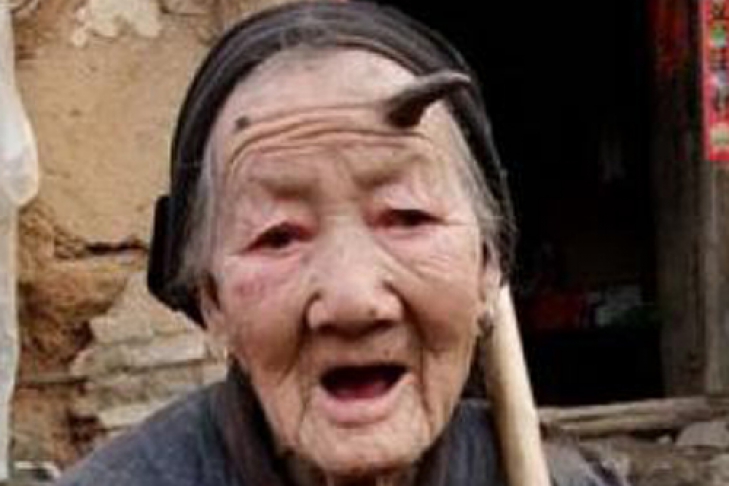 Пожилая жительница Китая страдает от наростов на собственном лбу