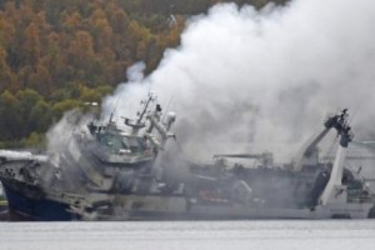 В норвежском порту Тромсе затонул российский рыболовецкий траулер "Бухта Наездник" после того, как на нем возник пожар