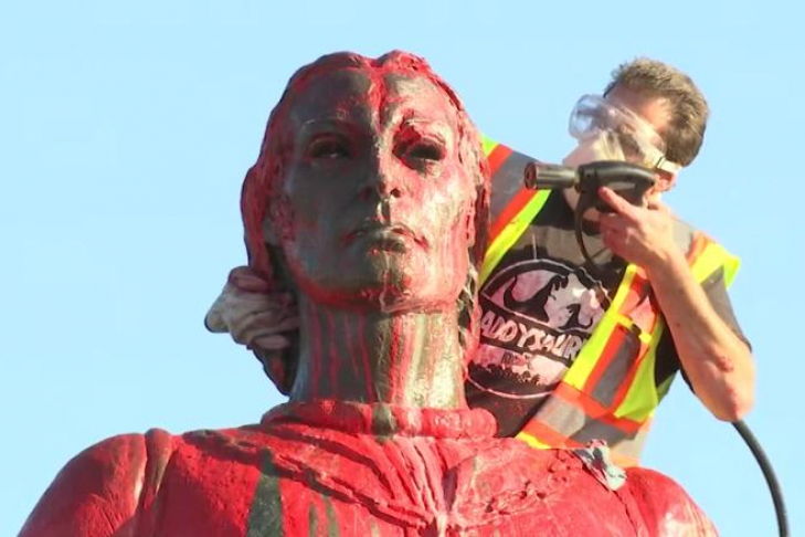 Как стало известно, монумент в Сан-Франциско уже привели в порядок. Работники коммунальных служб очистили памятник от краски и удалили граффити с надписью "Уничтожьте все памятники геноцида и убейте всех колонизаторов".