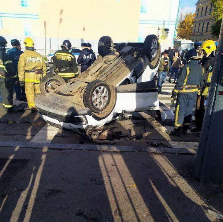 В российском Санкт-Петербурге произошла ужасная авария: здесь столкнулись два автомобиля, после чего один из них отскочил на группу пешеходов.