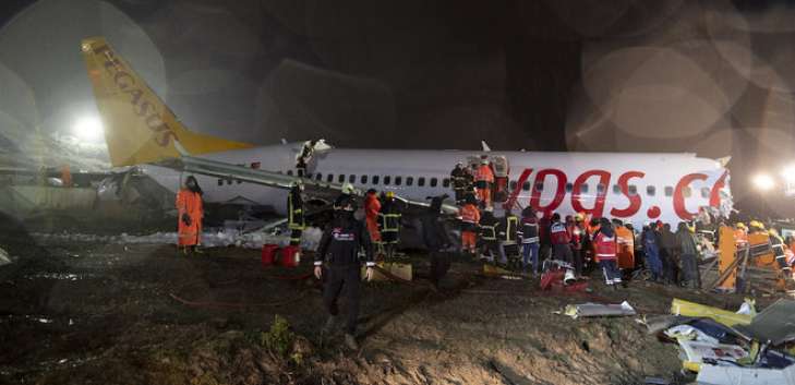 Рейс PC2193 авиакомпании Pegasus Airlines 5 февраля из-за плохой погоды совершил жесткую посадку в стамбульском аэропорту Сабиха Гекчен, после чего выкатился за пределы взлетно-посадочной полосы и развалился на три части. В результате аварии погибли три человека и 180 получили ранения.