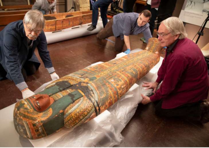 Мумию извлекли из гроба более ста лет назад, когда его перевезли из Египта в Кембридж, однако саркофаг вновь открыли лишь 30 лет назад.