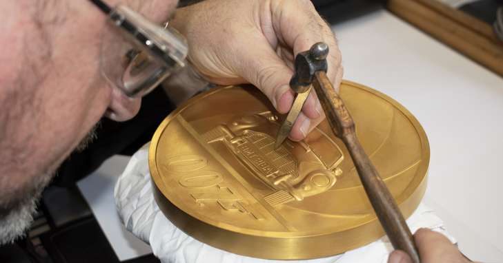 Special Issue for @007! Expertly made using state-of-the art machine cutting and laser frosting. Discover all 7 kilos of the largest coin ever produced in our 1,100 year history, designed by Laura Clancy https://t.co/eWWHVcDtmD #JamesBond pic.twitter.com/WoO5LxRez9