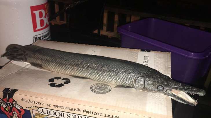Находка удивила очевидцев, однако специалисты объяснили, что это всего лишь Миссисипский панцирник, дин из видов крупных рыб семейства панцирниковых.