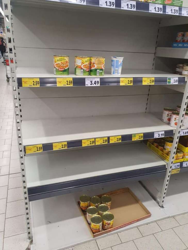 И действительно, даже немцы, которые славятся отсутствием склонности к расточительству, обнесли торговые полки подчистую.